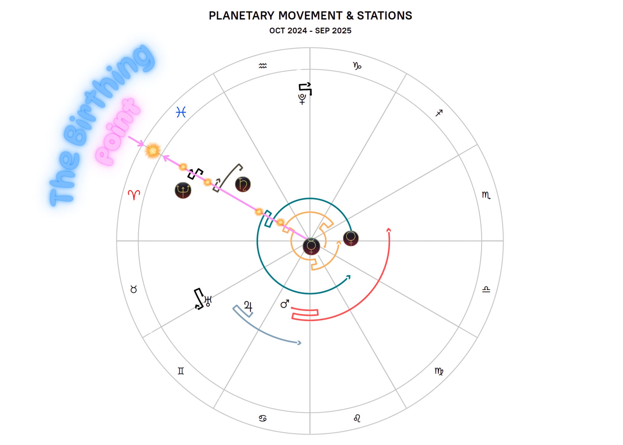 This year is going to be a big one. Whether you measure it from Jan 1st or Mar 20th, 2025 promises to cross new thresholds that will forever change the world, individually and collectively. Perhaps the most relatable image of this, because we have all experienced it, is birth. And so, as the planets pile up currently in Pisces, they prepare to cross that zodiacal threshold from end to beginning. The birthing point. 0° Aries.