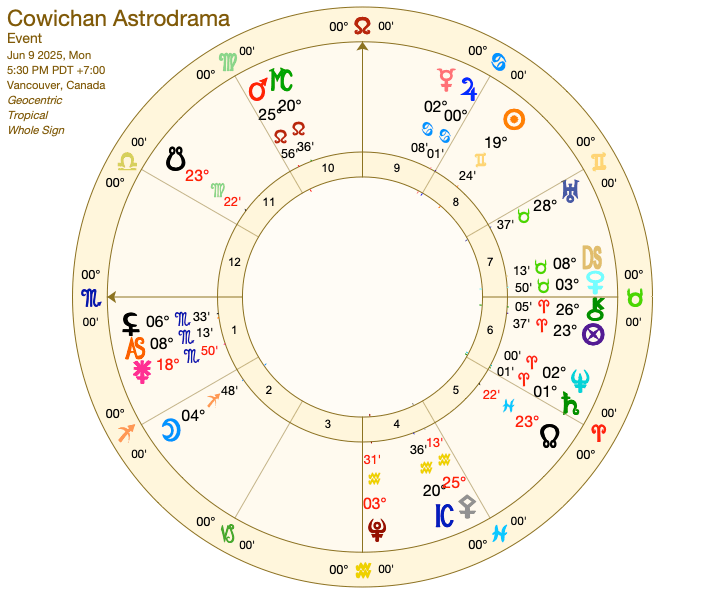 Saturn and Neptune will also have their say in the scene–their meeting in Aries tightly squaring Jupiter and Mercury’s meeting in Cancer. Oh the drama!